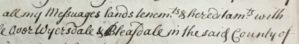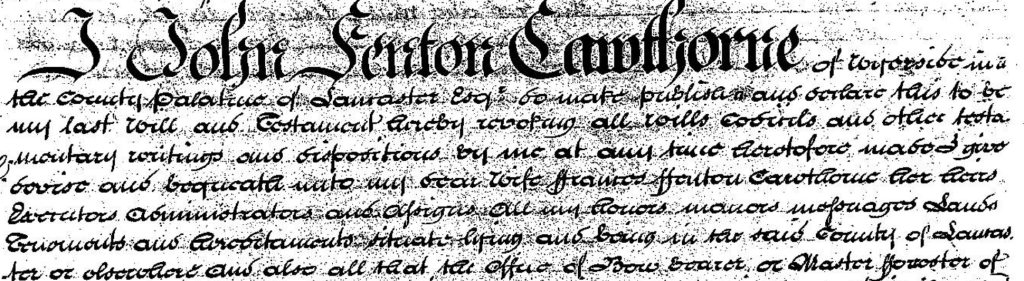 I decided to start with a focus on the ownership of land in Wyresdale by the Cawthorne and Fenton families in the seventeenth to nineteenth centuries. Many of the archive catalogue entries on wills and probate themselves provided a lot of information, particularly dates of death, which enabled me to roughly work out a connecting family tree.