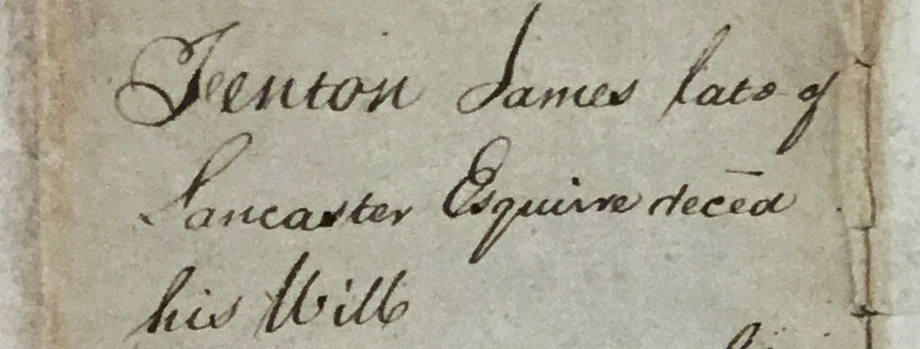 James Fenton, a Lancaster judge who already owned land in the area himself, married Elizabeth Cawthorne in 1748, so combining much of the landholdings of the two families. His will, dated 1791, was on one sheet of thin paper, about A4 size, folded. It was falling apart, and had been repaired with staples.